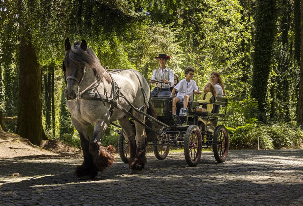 Horse-drawn cart rides take visitors on a journey back in time to the times of the creators of Pena. Among centuries-old botanical species, the romantic landscape reveals lakes and fountains, small buildings and new perspectives of the Palace of Pena.
